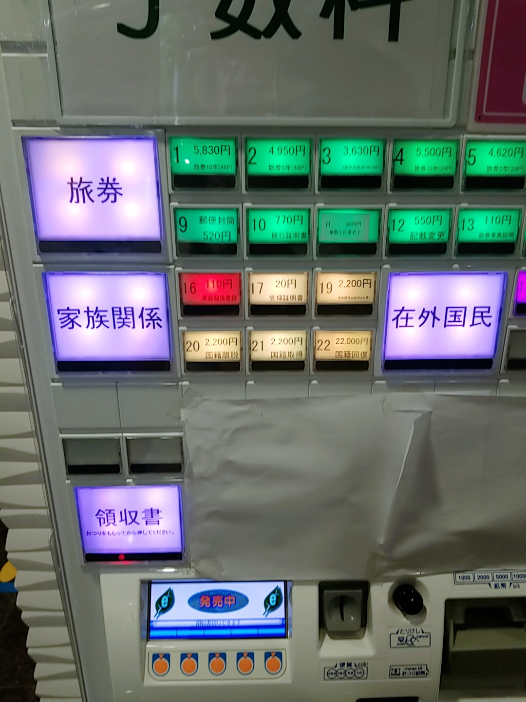 2층에 가면 아래의 티켓 자판기에서 가족관계 16번 110엔짜리 3장을 준비합니다.